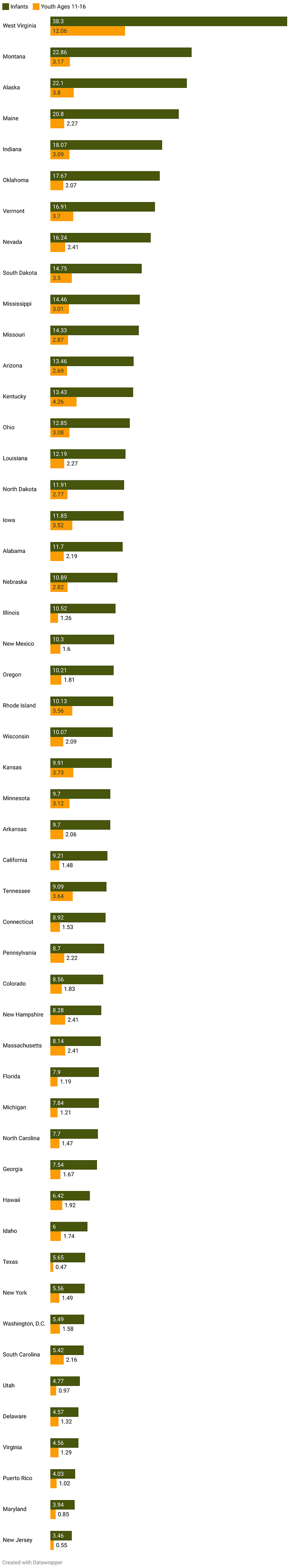 And why does West Virginia place infants roughly twice as often and youth three times as often as any other state?